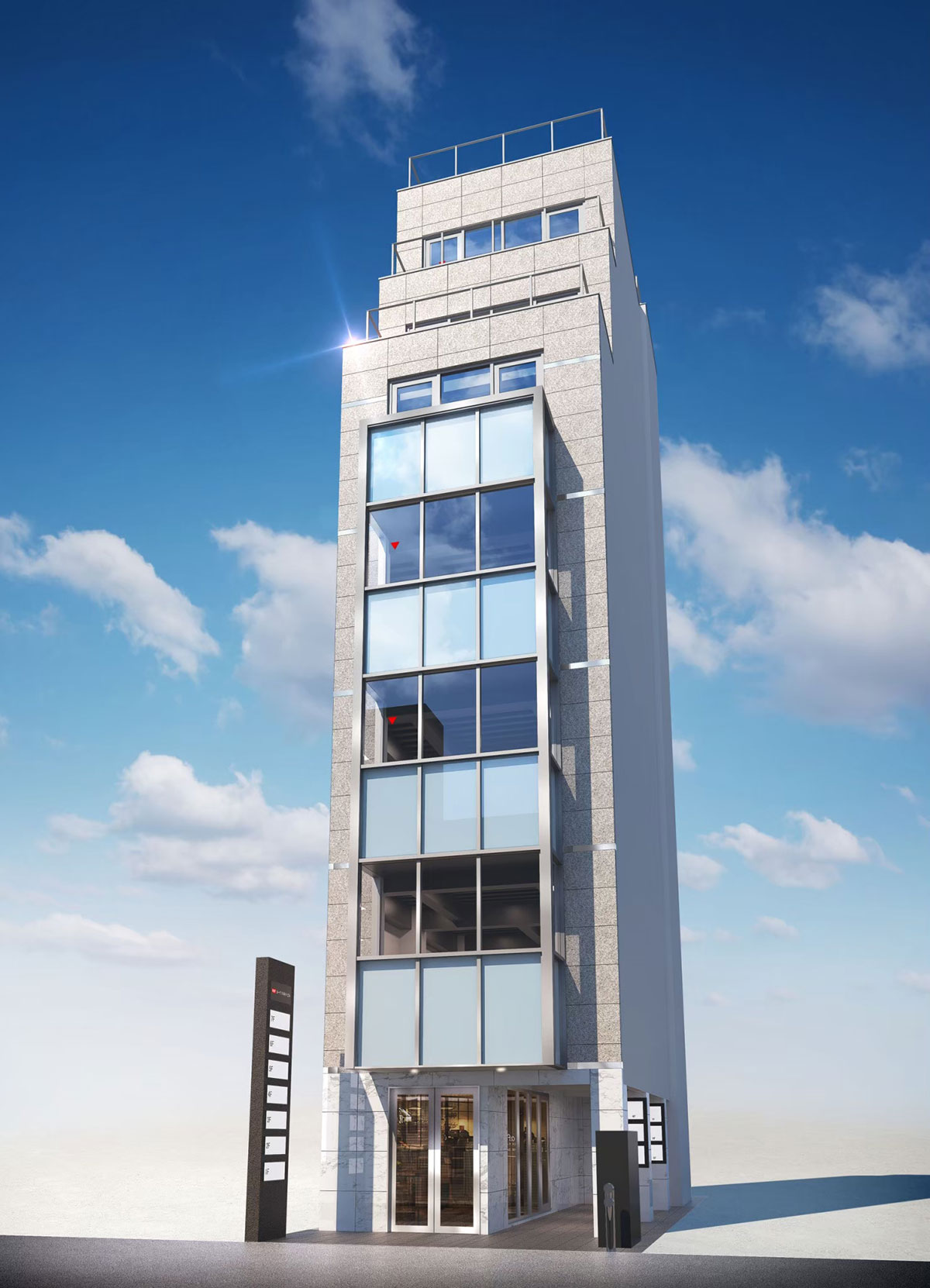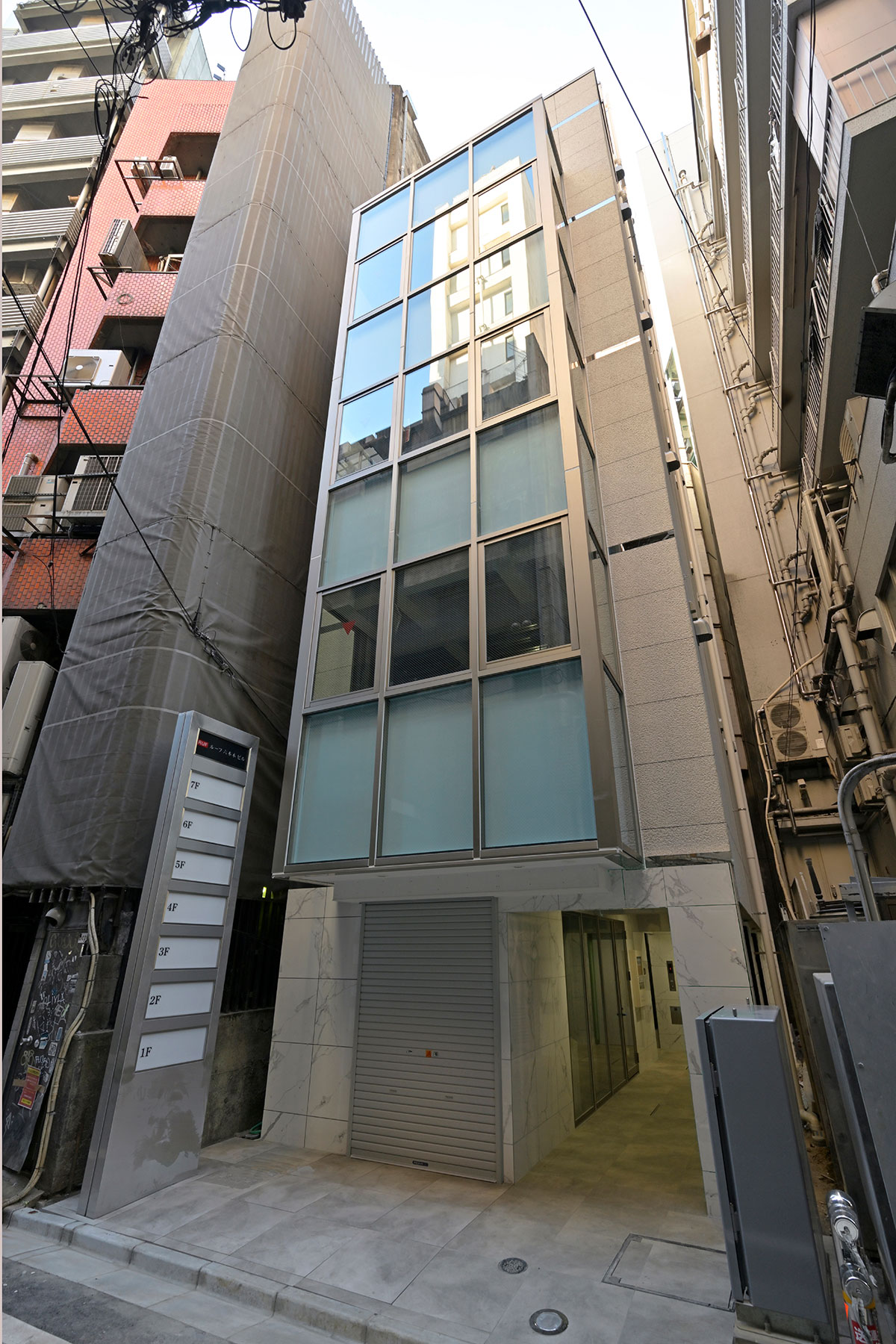 3Fは応接室兼事務室。内装は落ち着いたモノトーンとしながら、壁の一部にはラフなコテ塗り仕上げを採用した。