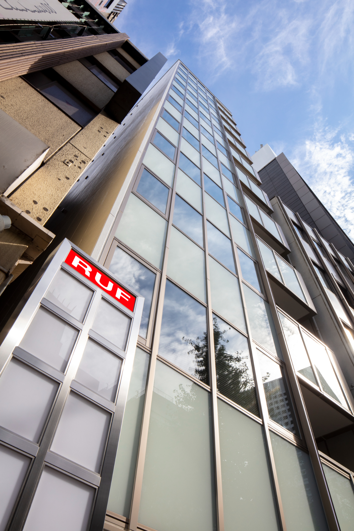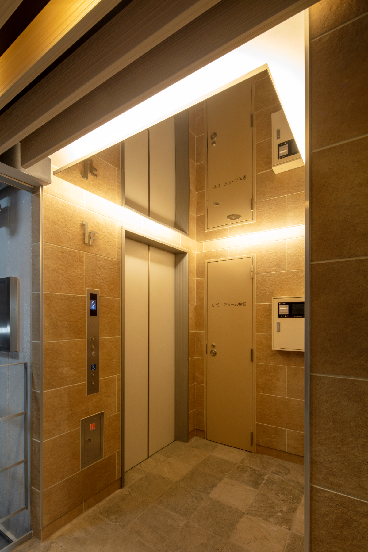 3Fは応接室兼事務室。内装は落ち着いたモノトーンとしながら、壁の一部にはラフなコテ塗り仕上げを採用した。